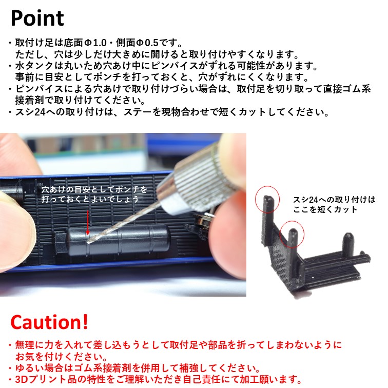 ピンバイスでの穴あけだけで簡単に取付が可能です。