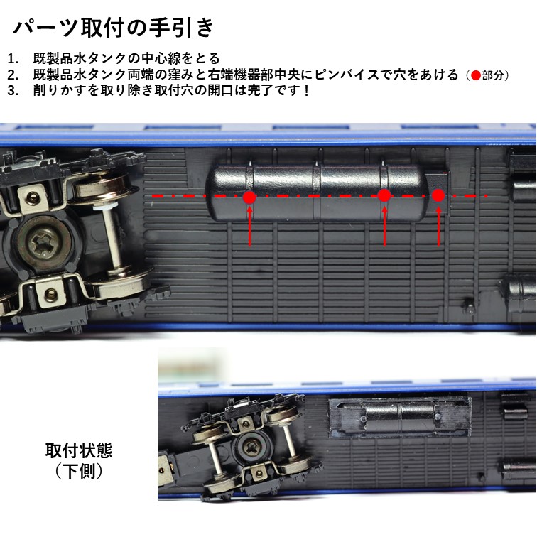 14系500番台からの改造車に取り付けられた耐雪鋼板補強の水タンクを一緒にセットしております。