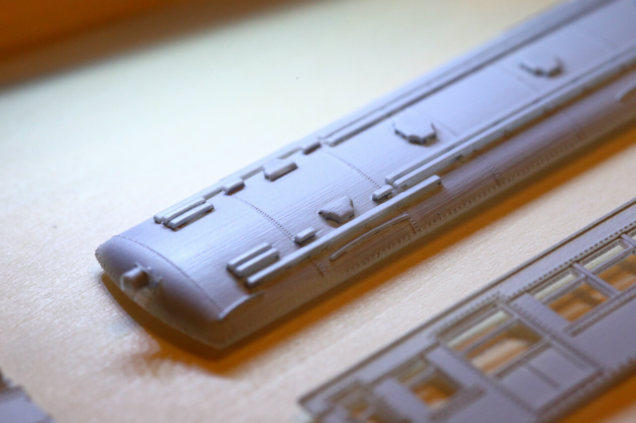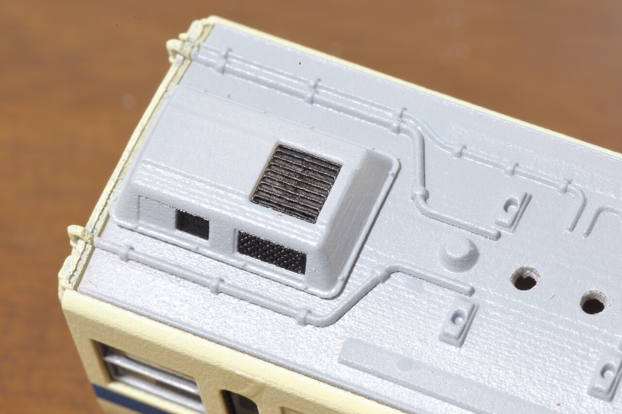 実車屋根上の雰囲気をなるべく再現しました。試作品では半ガラの位置がランボード端部に合うよう外側にオフセットされていたため、製品版では実車に倣って内側によせています。